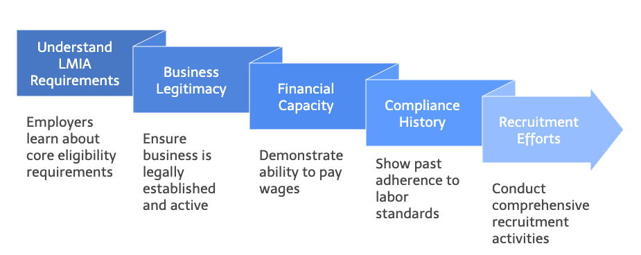Before examining specific document requirements, it’s important to understand what an LMIA is and how the process works. Employers must understand the four core eligibility requirements that apply to all LMIA streams. These requirements form the foundation of every LMIA application, regardless of which stream you’re pursuing.