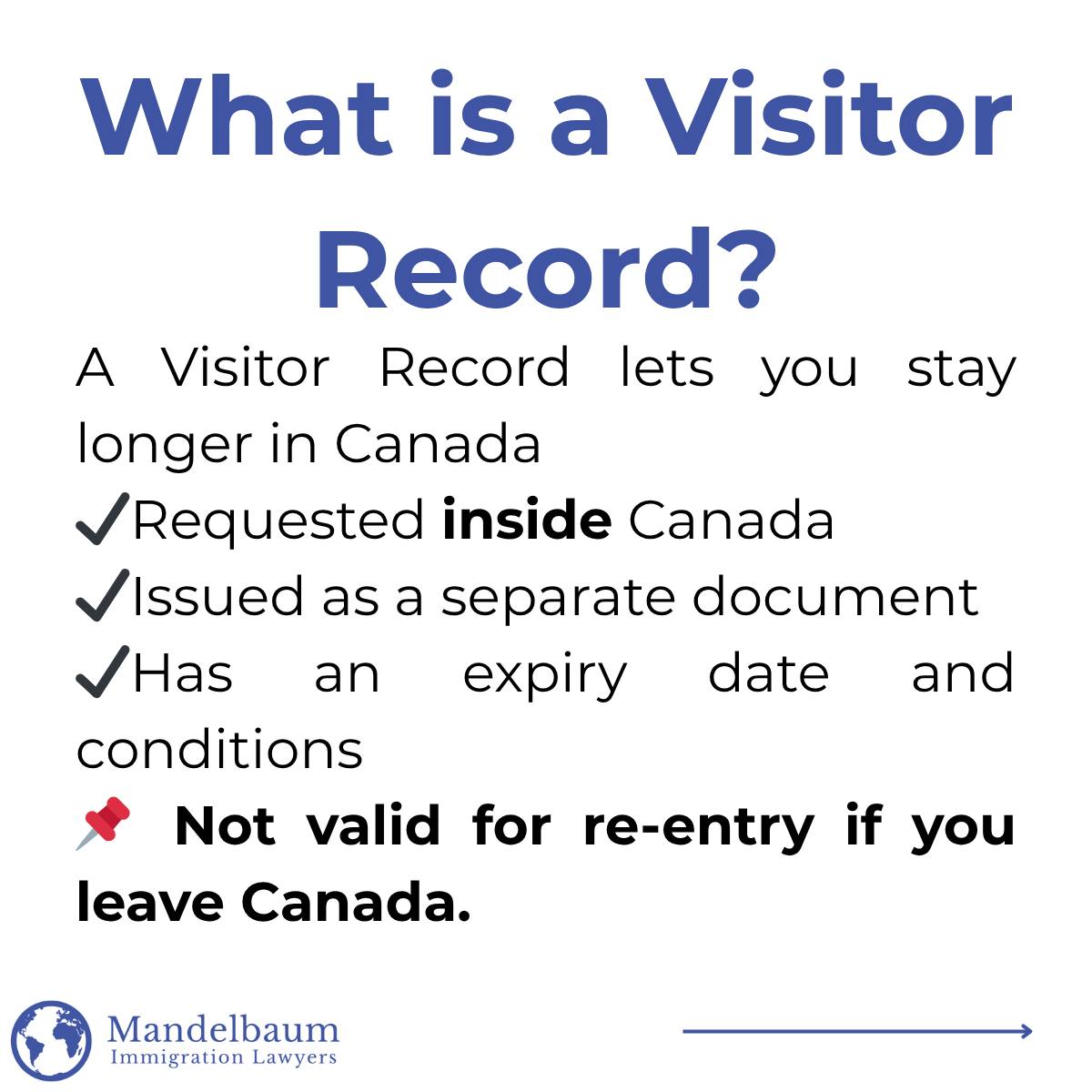 A Visitor Record does something completely different. You request this when you’re already inside Canada and need to extend your stay beyond what the border officer originally authorized.